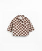 This shirt is made of cotton corduroy and recycled cotton, in the color Raw. Corduroy shirt with coconut button opening and our tile pattern.