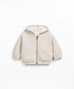 This fleece jacket is made of a knit fabric with a blend of cotton, recycled cotton and recycled polyester, in the color Raw. It features a hood, front zipper and applied side pockets.