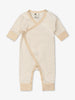 - Long sleeve + long pant romper with cross-tie detail