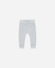 Our Knit Pant features an elastic waistband with a fixed tie and ribbed ankle cuffs for a cozy, comfortable fit. Featuring our ‘heathered dusty blue’ hue. Care: Machine wash cold. Lay flat to dry. Made of 100% Organic Cotton.