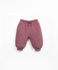 These trousers are made of jersey with a blend of cotton, recycled cotton and recycled polyester, in Dark Pink color. They feature an elastic waistband and cuffs, and a decorative drawstring.