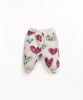 These trousers are made of fleece in a blend of organic cotton and cotton, in the Cru color. They feature an elastic waistband, decorative drawstring, elastic cuffs, and our heart print.