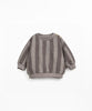 This sweater is made from knit fabric with a blend of organic cotton and cotton, in Light Grey color. It features long sleeves, a round neckline, a shoulder opening with coconut buttons, and our striped pattern.