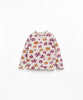 This Long sleeve is made of knit fabric with a mix of recycled cotton, recycled polyester, cotton, and polyester, in Ecru color. It has long sleeves, a mock neck, a shoulder opening with coconut buttons, and our floral print.