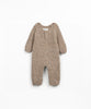 This jumpsuit is made of jersey fabric with a blend of recycled wool, wool and viscose, in the Light Brown color. It features long sleeves, a round neckline, and a front opening with a coconut button.
