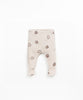 These trousers are made from jersey fabric with a blend of regenerative cotton and recycled cotton, in the color Off White. They are a model with an elastic waistband, enclosed feet, and our tree print.