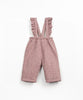 This jumpsuit is made of fleece with a blend of organic cotton and cotton, in Light Pink color. It is a model with straps, has a back opening with coconut button and spine print.