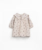 This dress is made of cotton fabric, in Cru color. It is a long sleeve model, with applied collar, front coconut button, and our strawberry tree print.